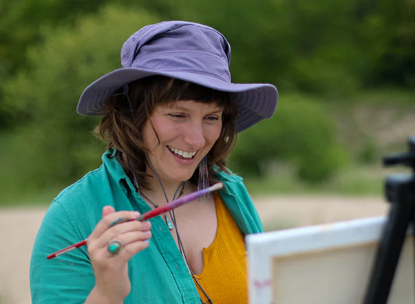 Randi started being drawn to nature and painting outdoors at the end of her time at Grand Valley State University where she received her B.F.A in 2012. She would spend her day creating a painting in gouache paint on paper at the Saugatuck Dunes and Hoffmaster Park near the university. There she found a sense of peace and meditation while she created. She felt the call to continue painting and committed to it. Soon afterward she started showing her work at small local events like the Fulton Street Farmers Market in Grand Rapids, which led to her expanding and being accepted into the top fine art festivals and galleries in Michigan. Growing up in an inland southern Michigan town on the Indiana border, the Lake Michigan Shoreline was new to her and awe-inspiring.